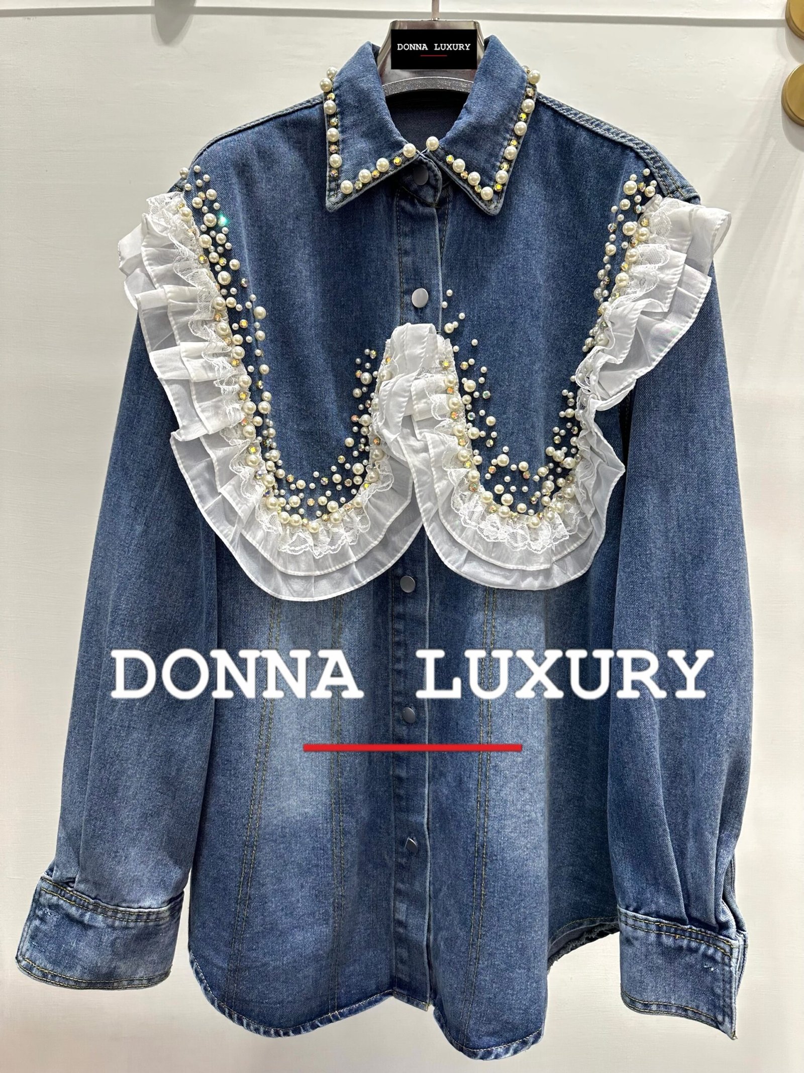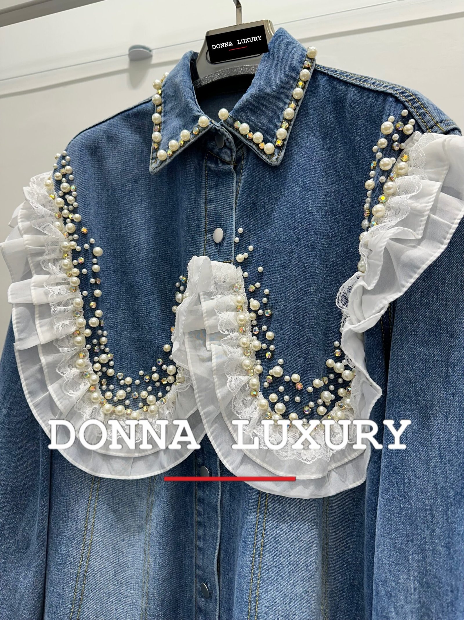 – dettagli: perle e volant sul davanti