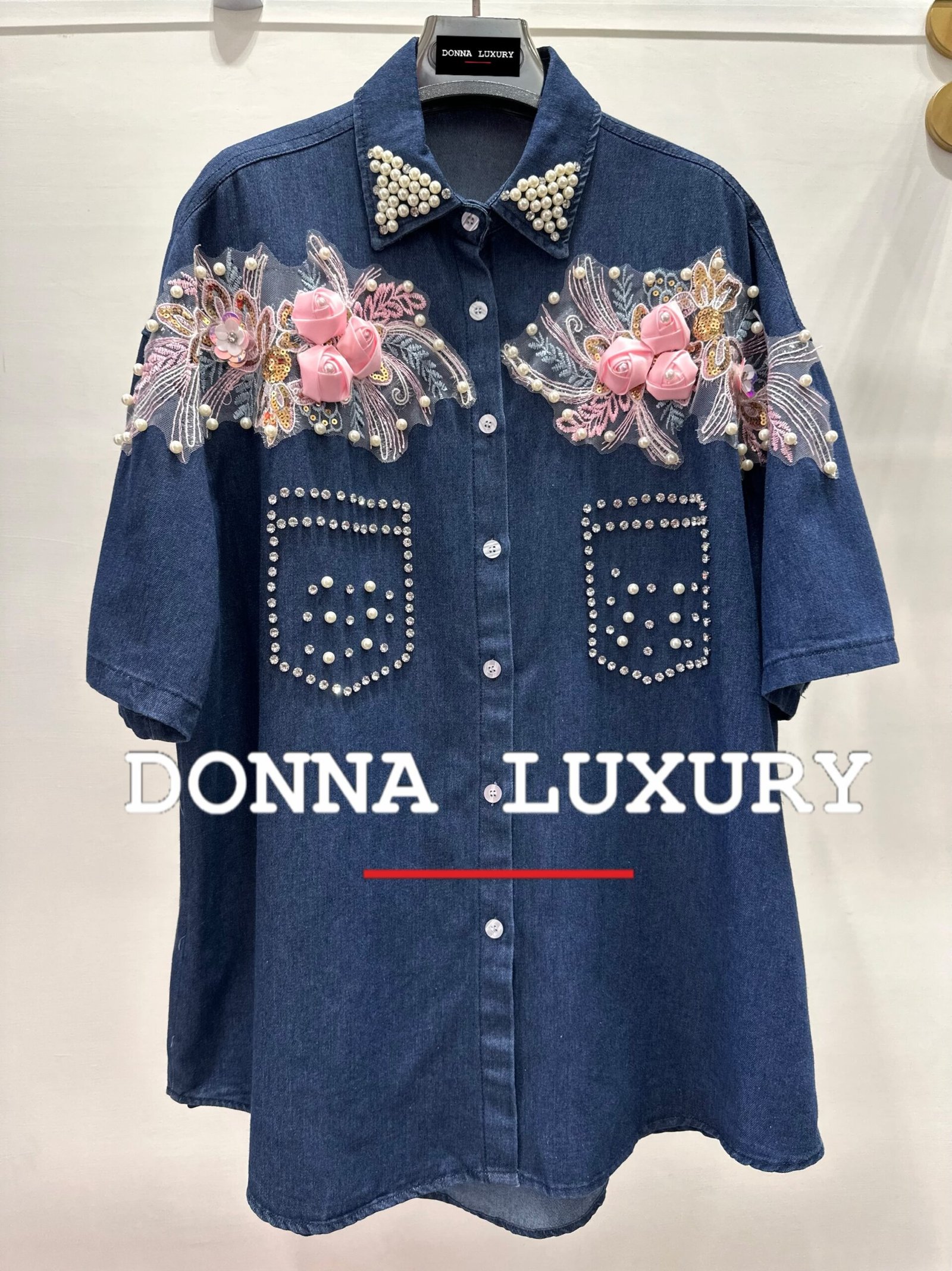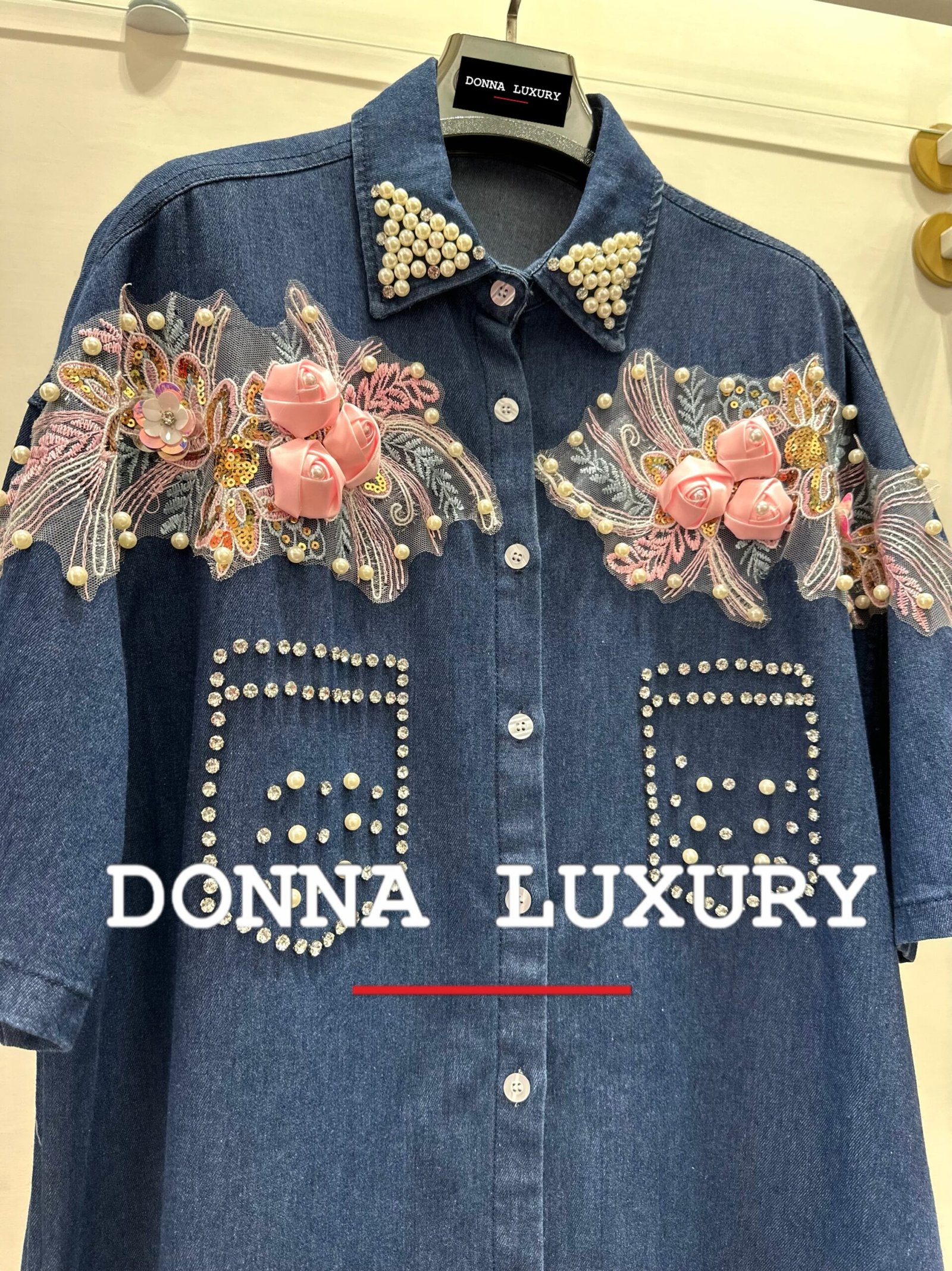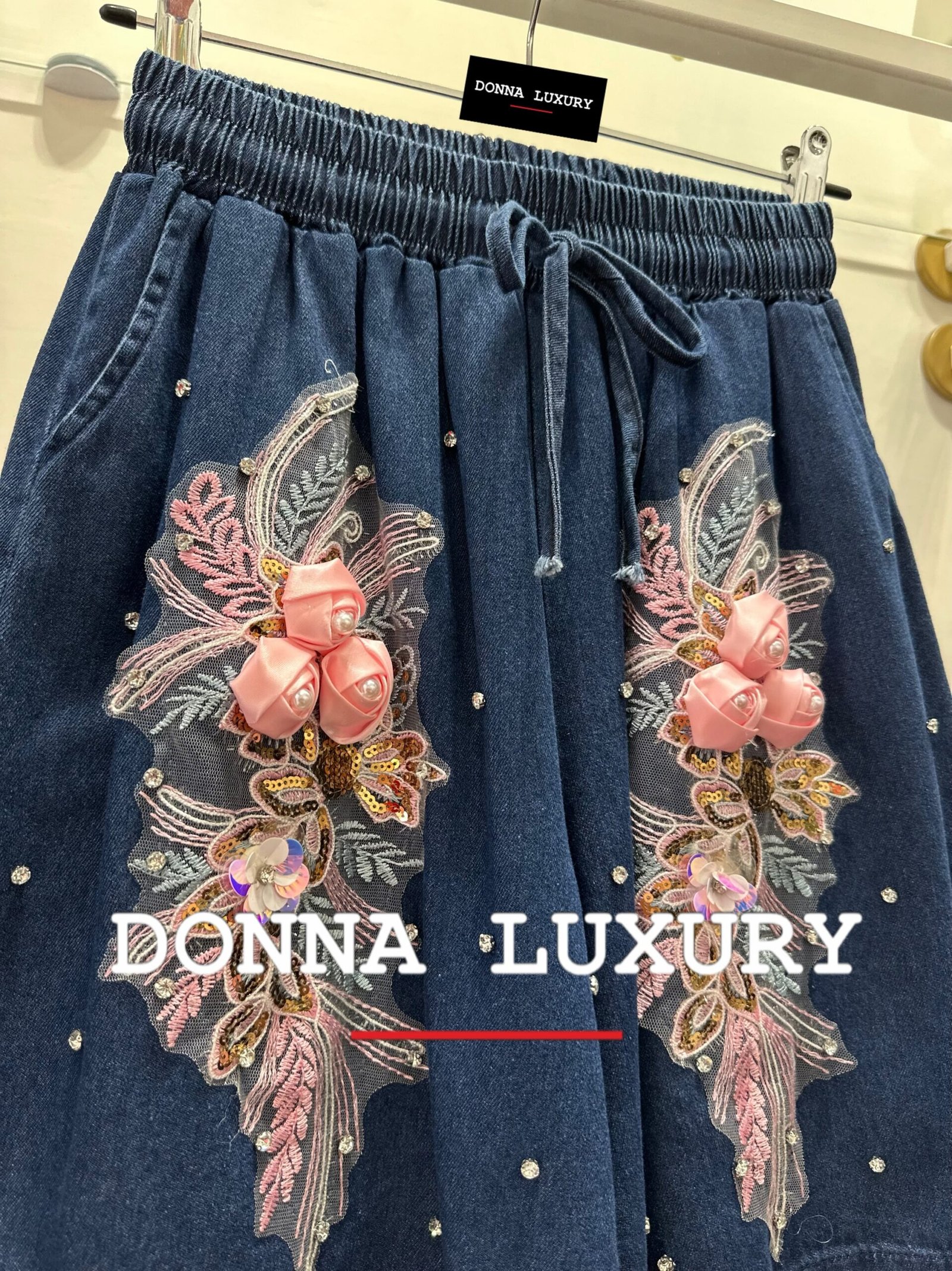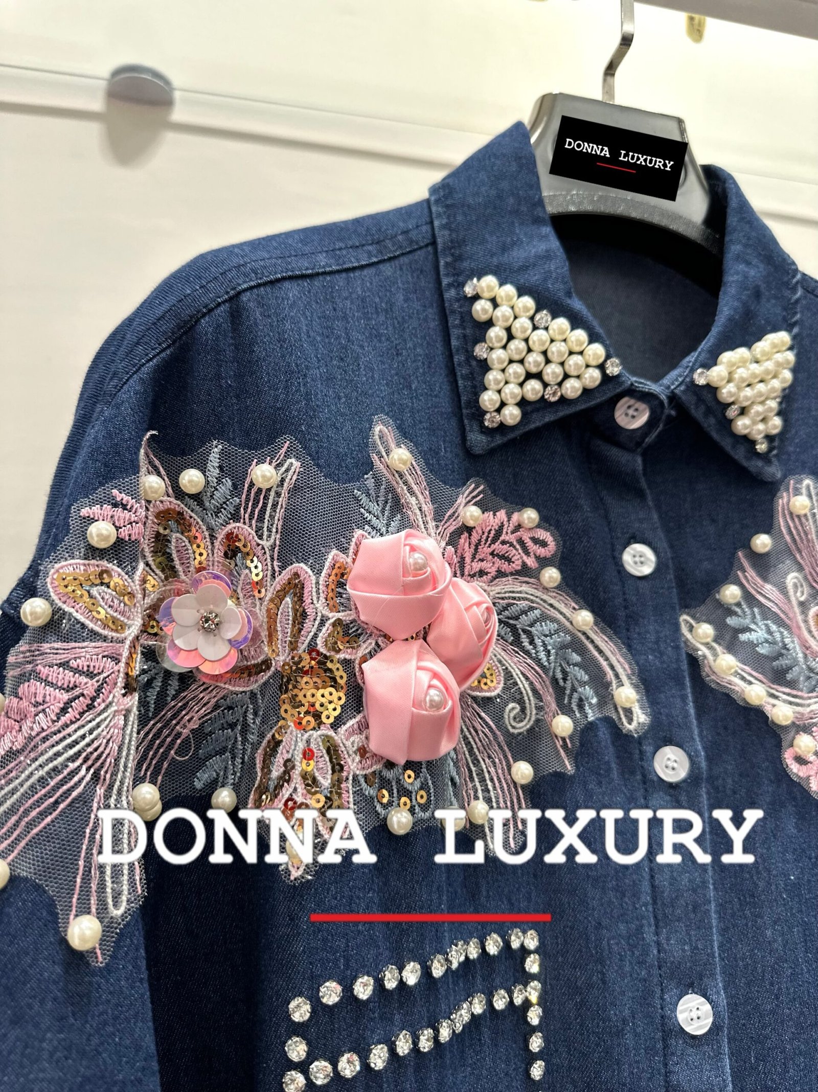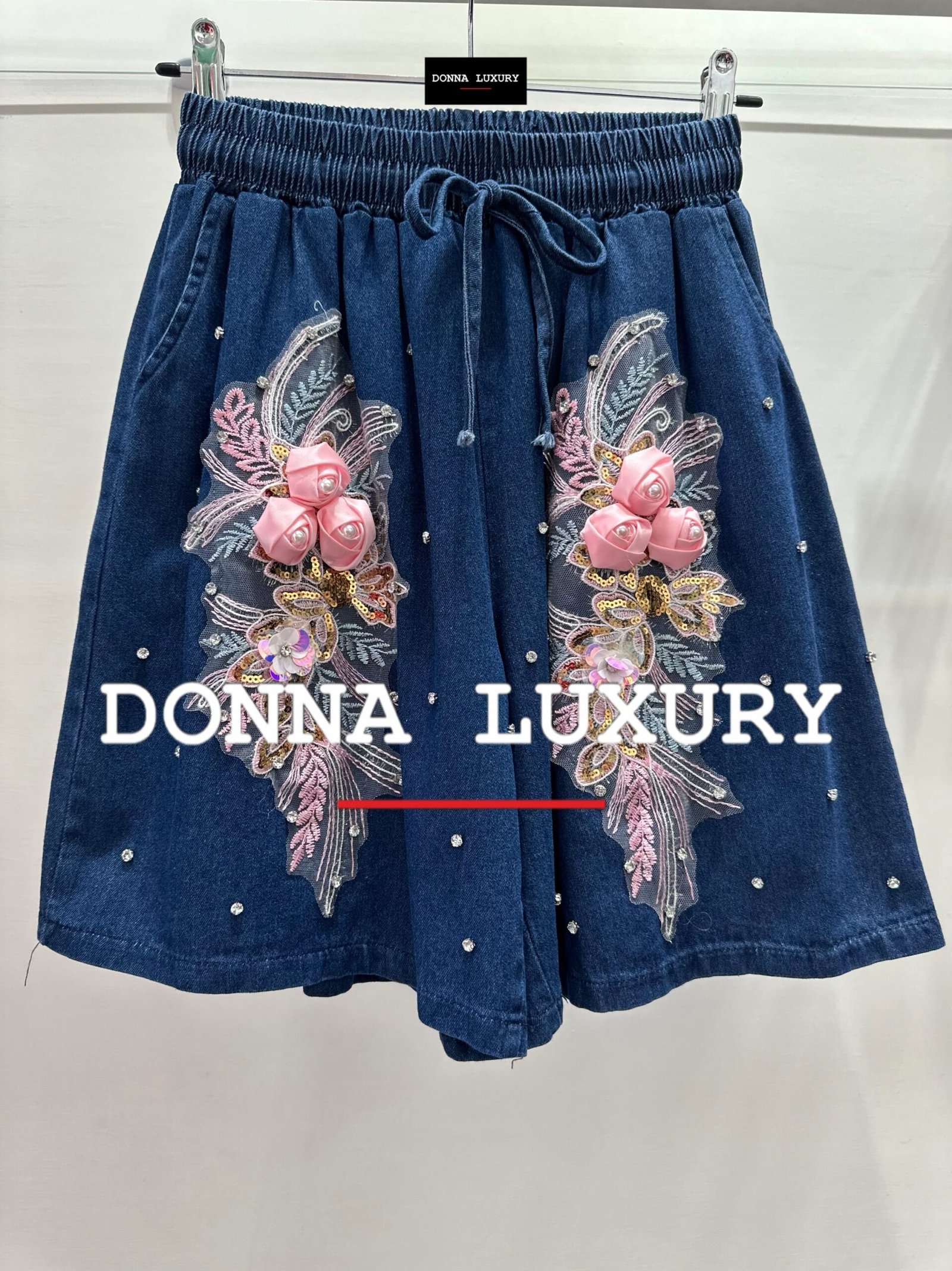 – dettagli: applicazione rose e strass sul davanti