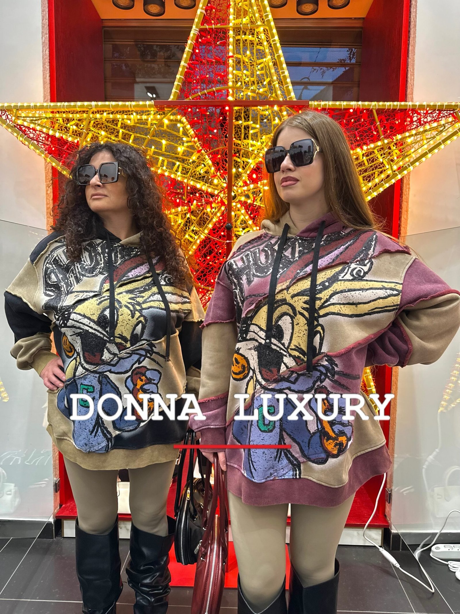– maxi felpa modello oversize Vestibilità dalla taglia 44 alla taglia 52