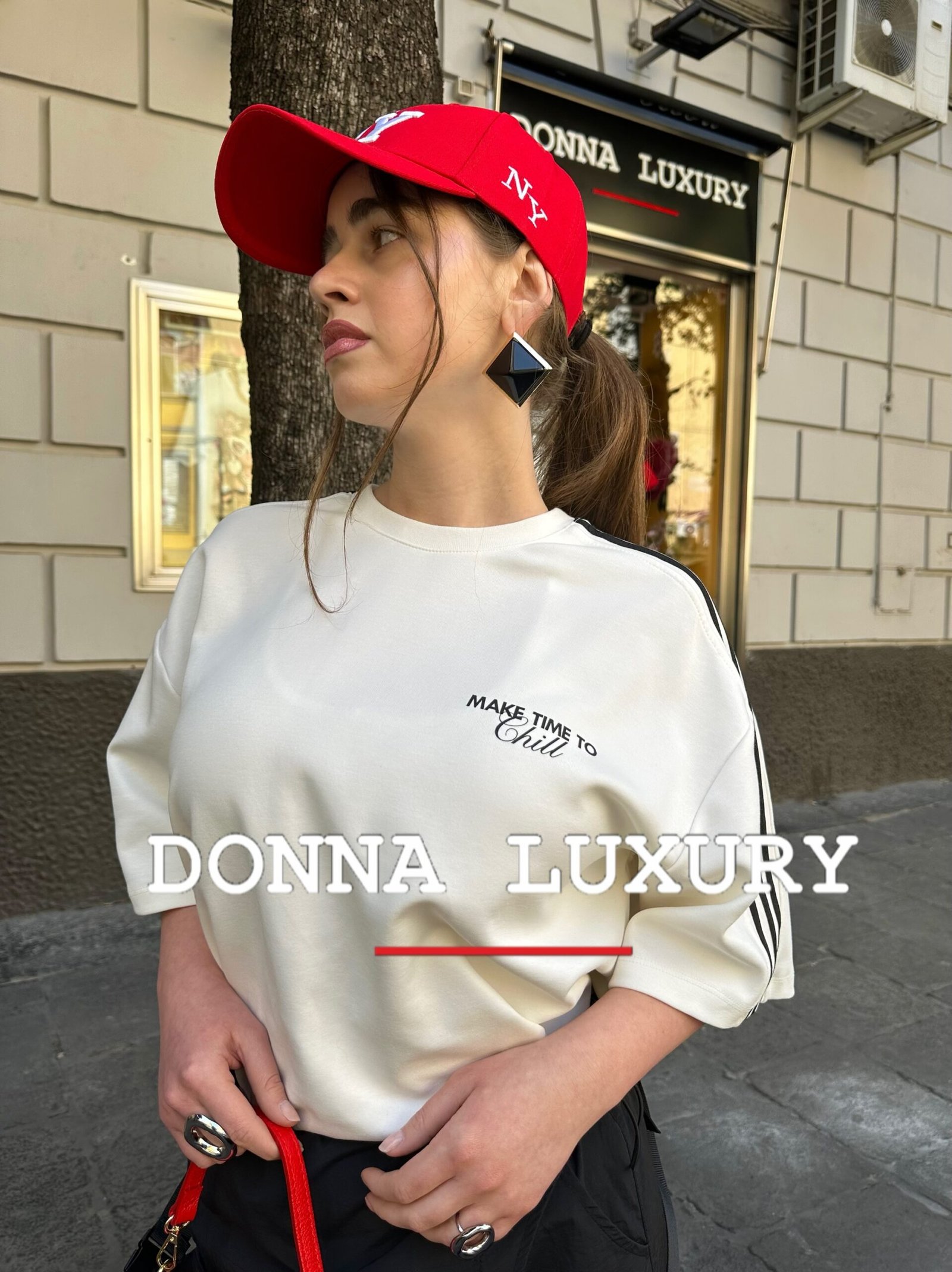 – t-shirt modello oversize Vestibilità dalla taglia 44 alla taglia 48