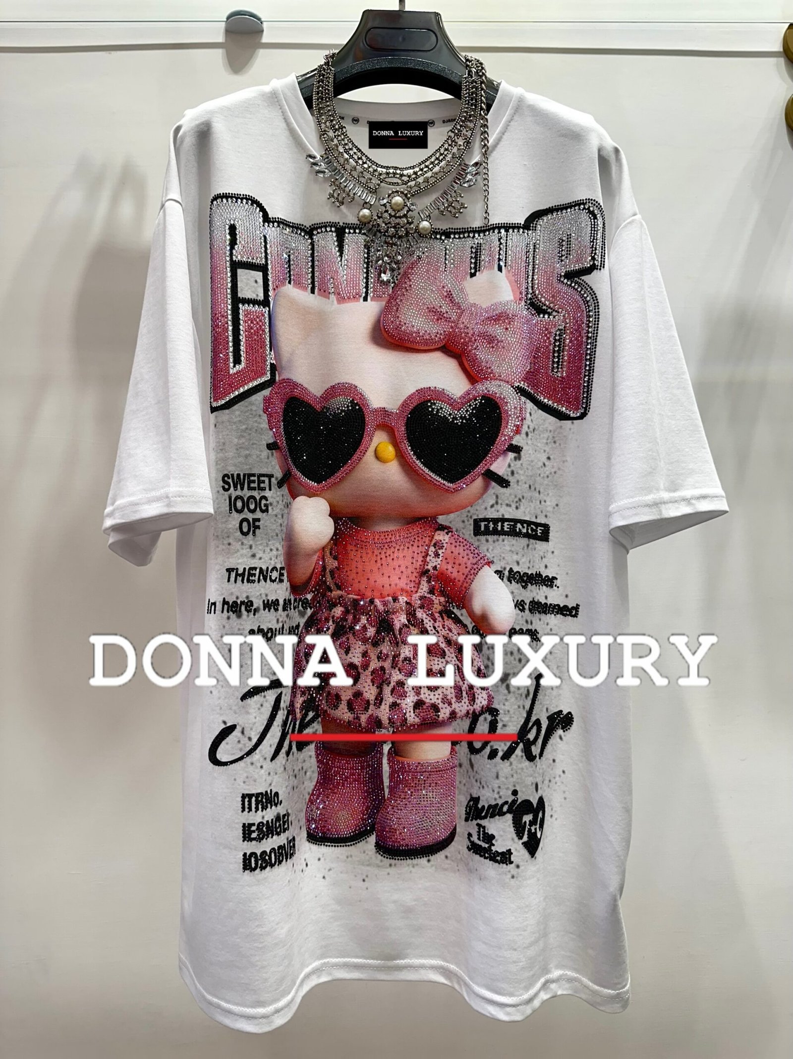 – t-shirt modello oversize Vestibilità dalla taglia 44 alla taglia 48/50