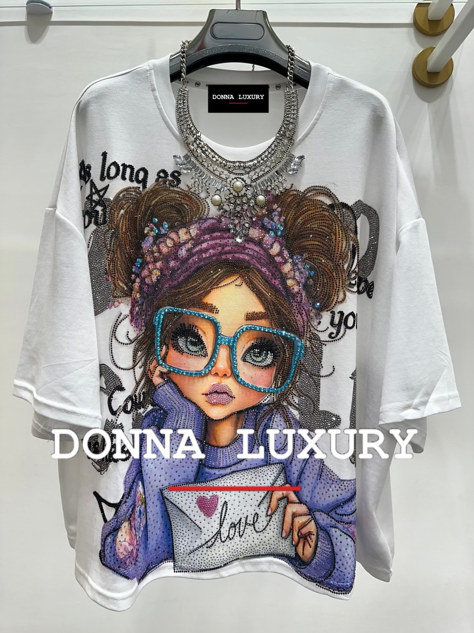 – t-shirt modello oversize Vestibilità dalla taglia 44 alla taglia 48/50