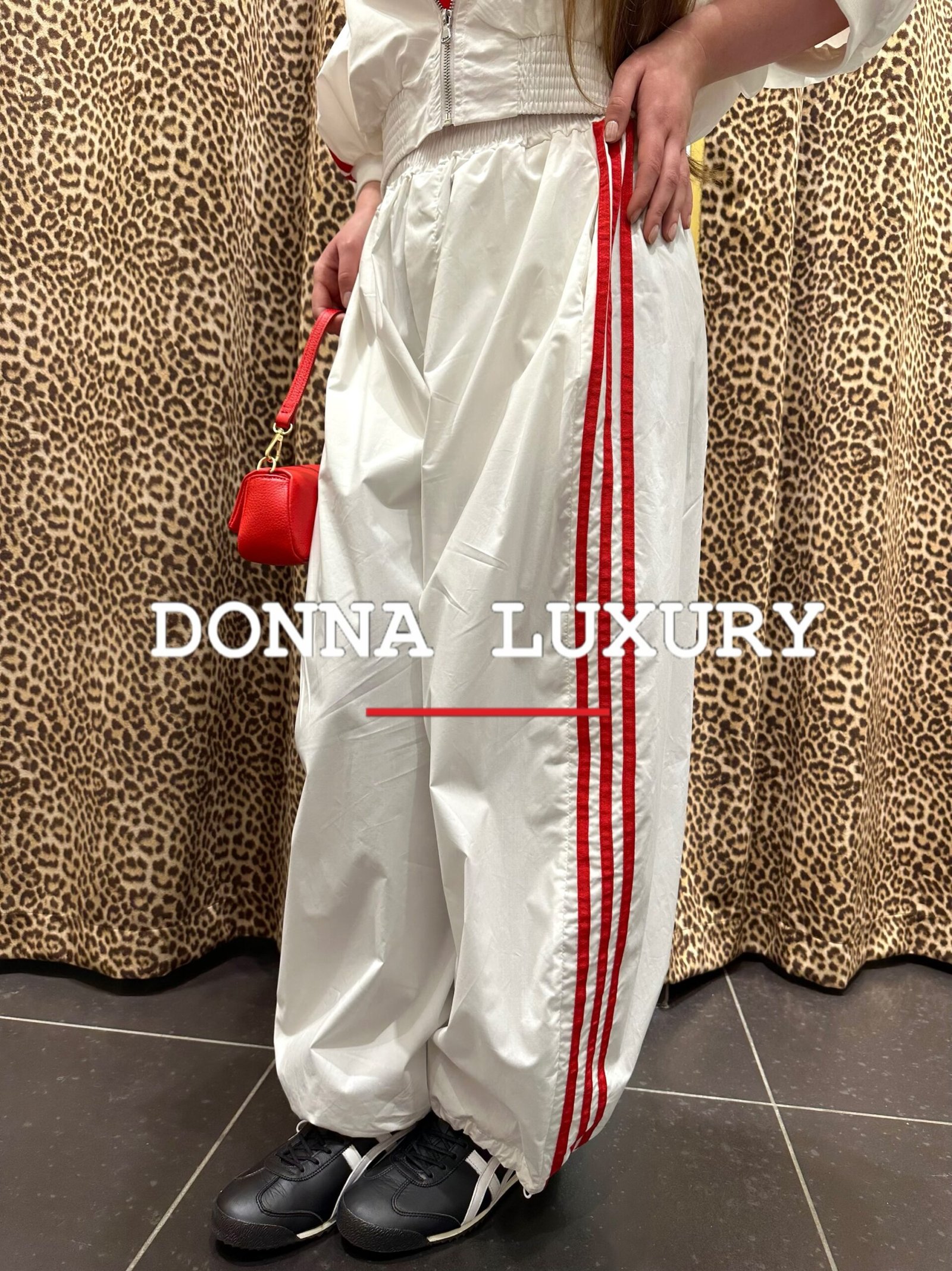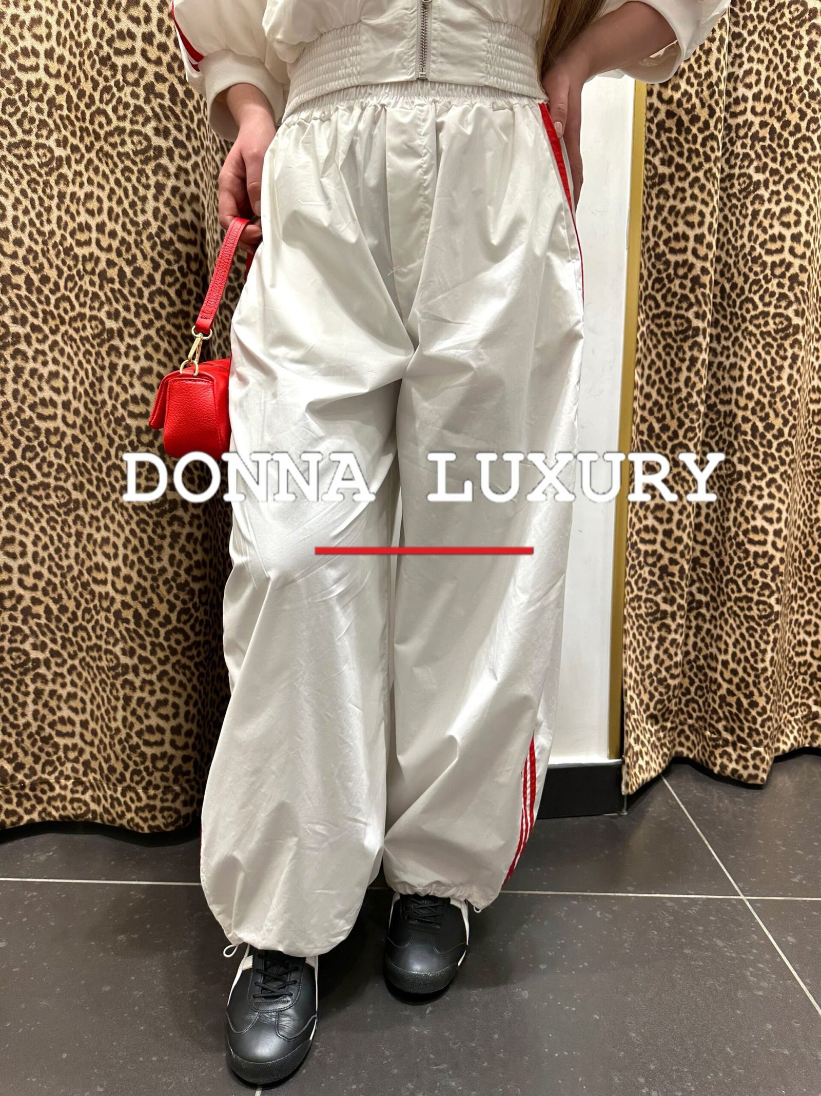 – elastico nella parte inferiore del pantalone , striscia rossa laterale
